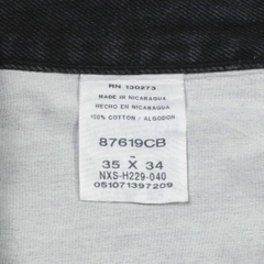 Vải denim dày vừa, mặt vải thô đặc trưng kiểu Mỹ, màu đen phai tông xám rất đẹp