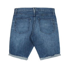 Vải selvedge denim dày vừa, vải co giãn, mặt vải thô nhẹ, gấu quần kiểu “raw hem” không gấp lai
