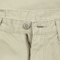 Vải twill dày vừa, mặt vải thô nhẹ, cúc gài & đinh tán Scovill