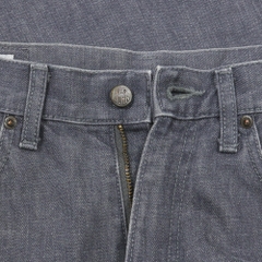 Vải denim dày vừa, mặt vải thô, màu wash nguyên bản, gấu chainstitch