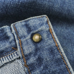 Vải denim dày vừa, mặt vải thô, cúc & đinh tán Scovill