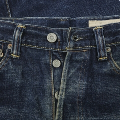 Vải selvedge denim dày vừa, mặt vải thô nhẹ, gấu quần chainstitch, dáng cropped leg ống quần ngắn mặc kiểu lửng