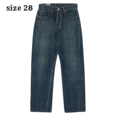 Vải selvedge denim dày vừa, mặt vải thô nhẹ, đinh tán Scovill, dùng cúc gài