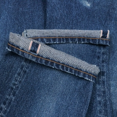 Vải selvedge denim dày vừa, mặt vải thô nhẹ, cúc & đinh tán Universal, gấu quần chainstitch, màu wash nguyên bản