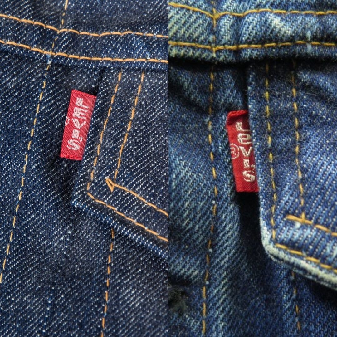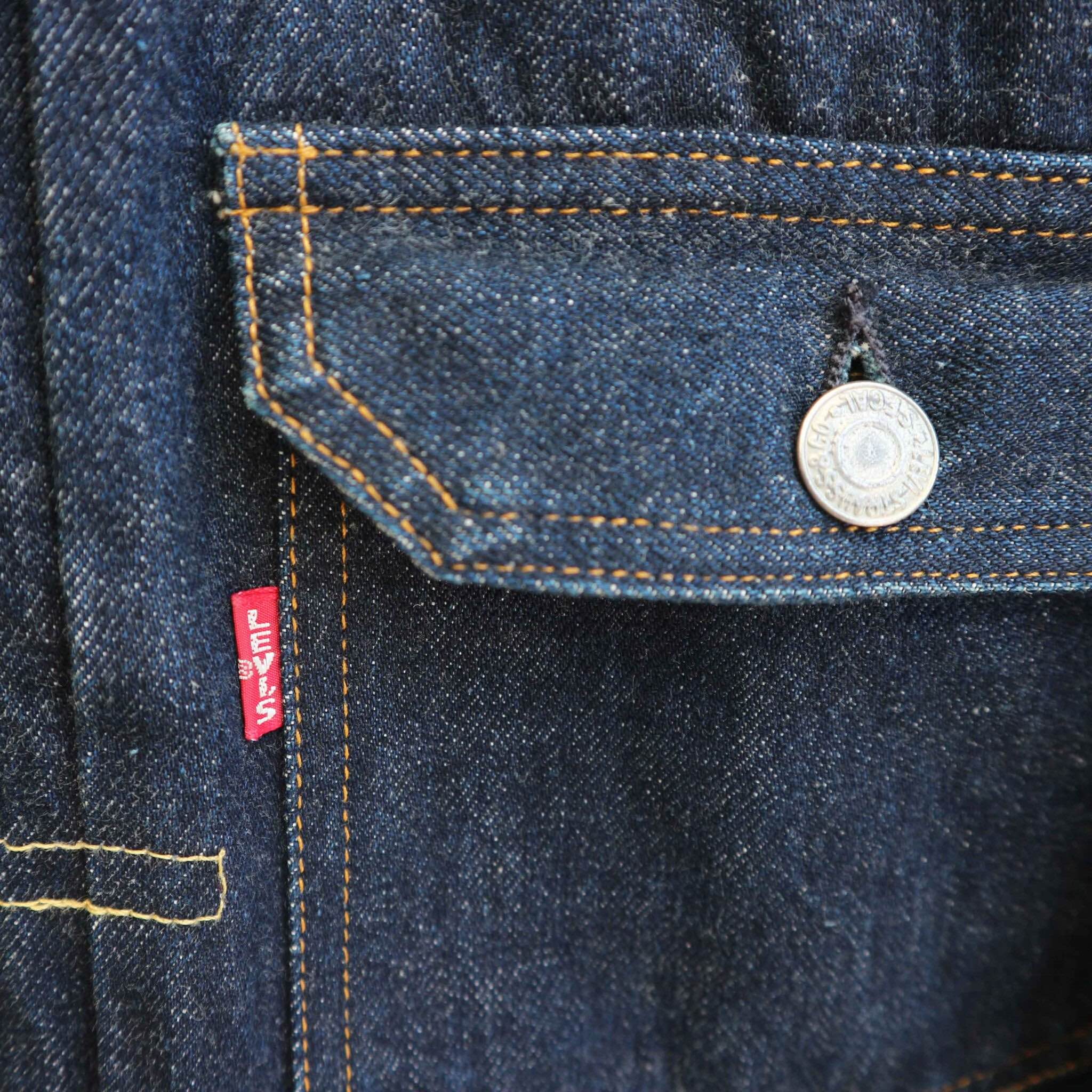 | Các đặc điểm của thiết kế Type 3 bao gồm: – Hai túi ngực với nắp túi tam giác (pointed pocket flap) – Tăng eo (waist adjuster / waist strap) ở mặt sau – Tab đỏ LEVI’S với chữ “E” in hoa (đến 1971) – Classic slim fit có chiều dài thân áo ngang thắt lưng, thân áo ôm hơn Type 1 & 2 |