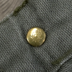 Vải canvas dày vừa, mặt vải thô nhẹ, cúc gài Scovill