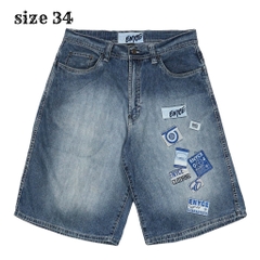 Vải denim dày vừa có co giãn, mặt vải thô nhẹ, mặt trước thêu patch