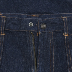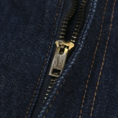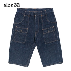 Vải denim dày vừa, mặt vải thô, màu indigo đậm độ mới cao, khoá kéo Universal, gấu quần chainstitch nguyên bản, design kiểu quần bush shorts dạng túi vuông