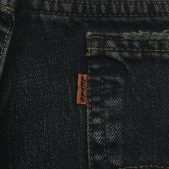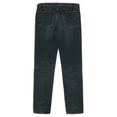 Vải denim dày vừa, mặt vải thô nhẹ, khoá kéo Talon, màu wash & distress nguyên bản của hãng, big "E" orange tab. Sản xuất năm 2004