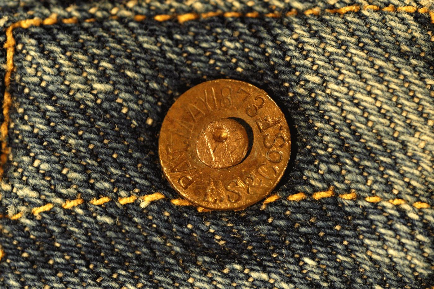 Sau đó, một thợ may có tên Jacob Davis – người thường xuyên mua vải denim từ Levi, đã thử nghiệm việc dùng đinh tán gia cố những yếu điểm trên chiếc quần như góc túi, đũng quần nhằm tăng độ bền thay vì chỉ may thông thường. Levi & Jacob đã hợp tác cùng nhau để đăng ký bản quyền sáng chế cho quần denim có đinh tán gia cố (lúc này được gọi là denim overalls / waist overalls) và chính thức nhận được bản quyền vào ngày 20/05/1873. Đến hiện tại, ngày 20 Tháng Năm được xem là ngày ra đời của quần jeans như để kỷ niệm sự sáng tạo của Jacob & Levi khi đã dùng vải denim, chỉ & đinh tán để tạo nên loại quần bền chắc & phổ biến nhất trên trái đất.
