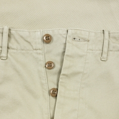 Vải dày vừa, mặt vải thô nhẹ, cúc gài kiểu Army Trousers