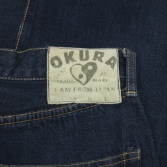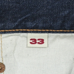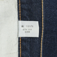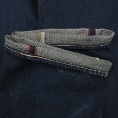Vải selvedge denim dày vừa, mặt vải thô nhẹ, selvedge màu đỏ - bản lai nhỏ, gấu quần chainstitch nguyên bản
