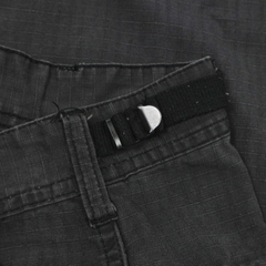 Vải cotton ripstop dày vừa, mặt vải thô nhẹ, có đai tăng chỉnh ở hông, gấu quần có dây rút