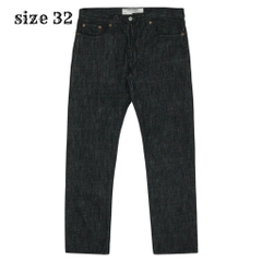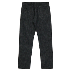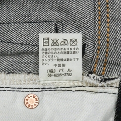 Vải denim dày vừa, mặt vải thô cứng, khoá kéo YKK tép kéo lớn, đinh tán Universal, gấu quần chainstitch