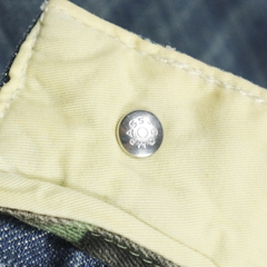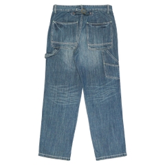 Vải denim dày vừa, mặt vải thô nhẹ, gối double-knee, có cinch-back, quần nặng