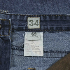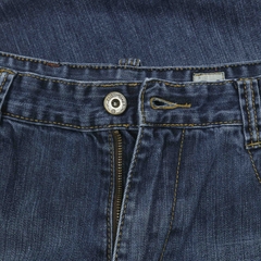 Vải denim dày vừa, mặt vải thô nhẹ, khoá kéo YKK tép kéo lớn, logo thêu ở túi sau