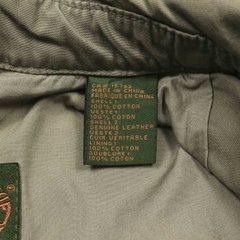 Vải dày dặn, mặt vải thô cứng, có đai tăng chỉnh ở hông sau, phối da thật dưới cổ áo