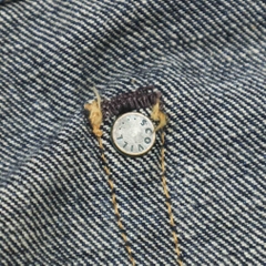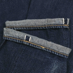 Vải selvedge denim dày vừa, mặt vải mềm kiểu sợi slub nhẹ, đinh tán Scovill bằng đồng đã lên ten xanh, selvedge màu trắng hồng, gấu quần chainstitch nguyên bản đã lên rope fade, selvedge coin-pocket, red tab “3 R”
